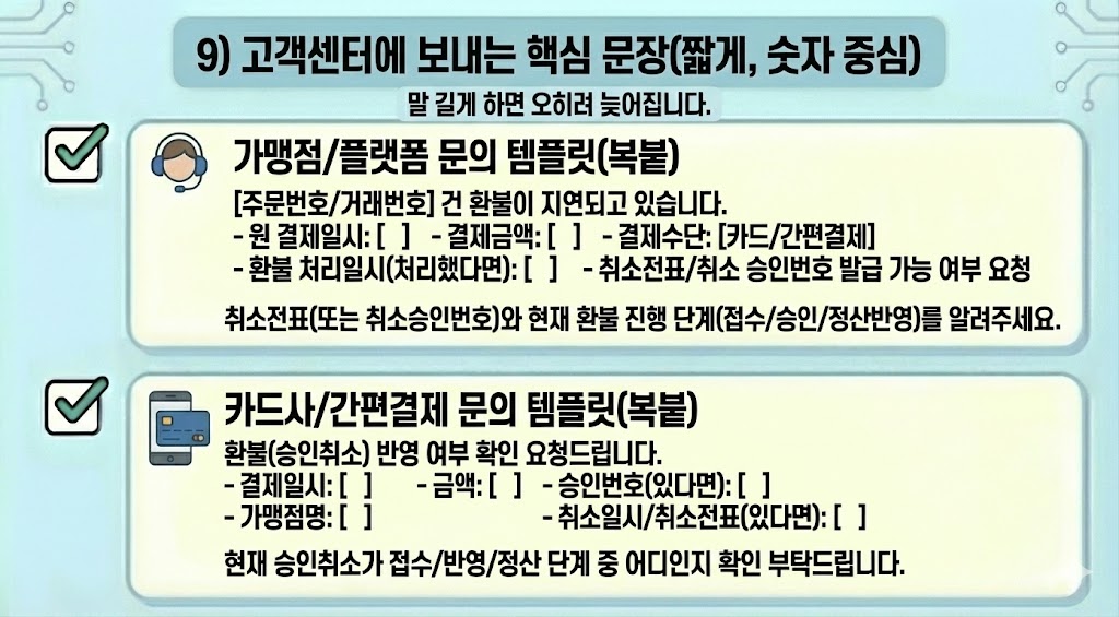 9) 고객센터에 보내는 핵심 문장(짧게, 숫자 중심)