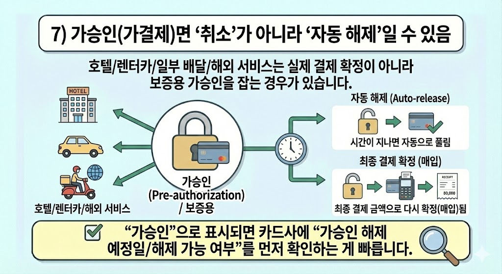 7) 가승인(가결제)면 ‘취소’가 아니라 ‘자동 해제’일 수 있음