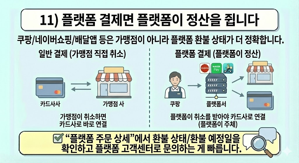 - 가맹점이 아니라 플랫폼 환불 상태가 더 정확합니다.