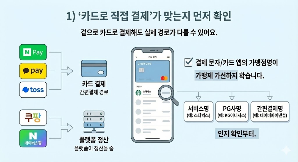 1) “카드로 직접 결제”가 맞는지 먼저 확인