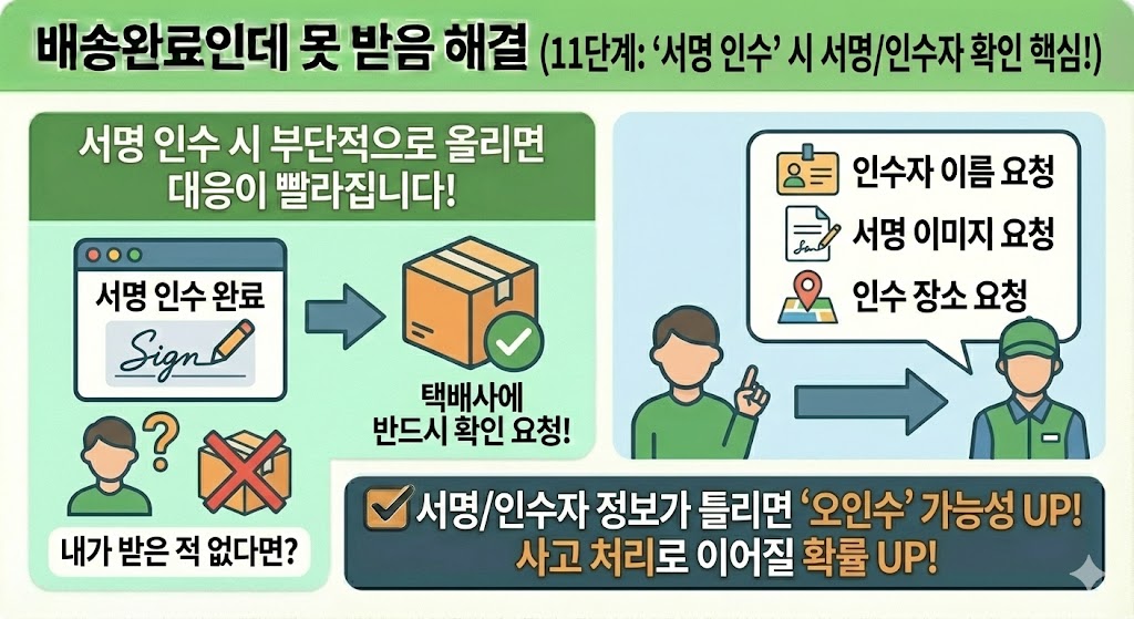11) “서명 인수”로 찍혔다면: 서명/인수자 확인이 핵심