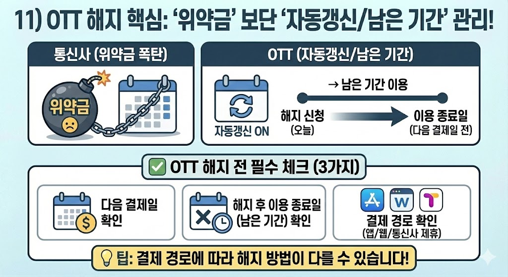 11) OTT는 ‘위약금’보단 ‘자동갱신/남은 기간’이 핵심
