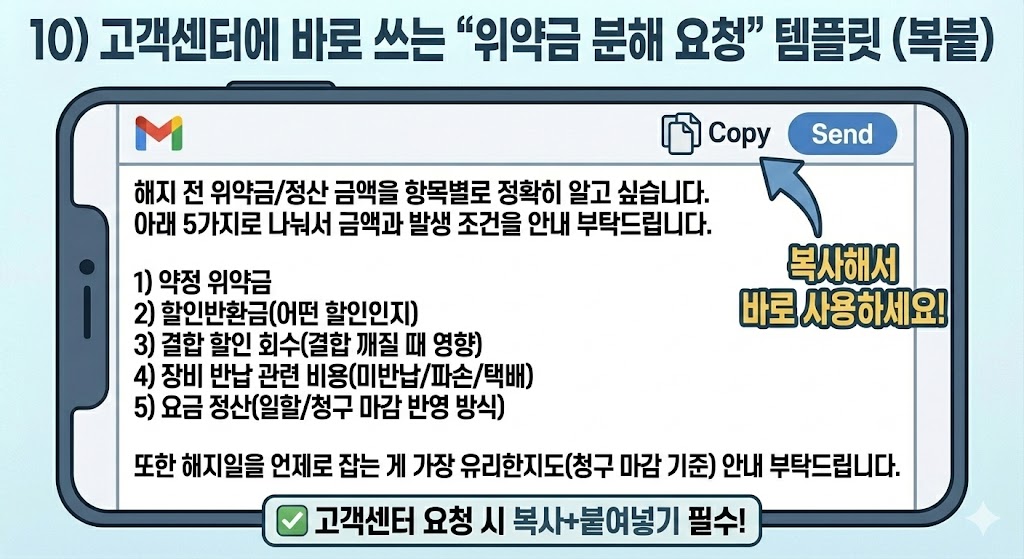 10) 고객센터에 바로 쓰는 “위약금 분해 요청” 템플릿(복붙)