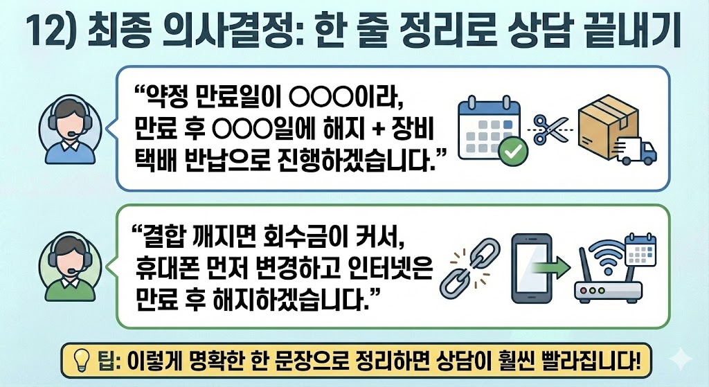 - “약정 만료일이 OOO이라, 만료 후 OOO일에 해지 + 장비 택배 반납으로 진행하겠습니다.”