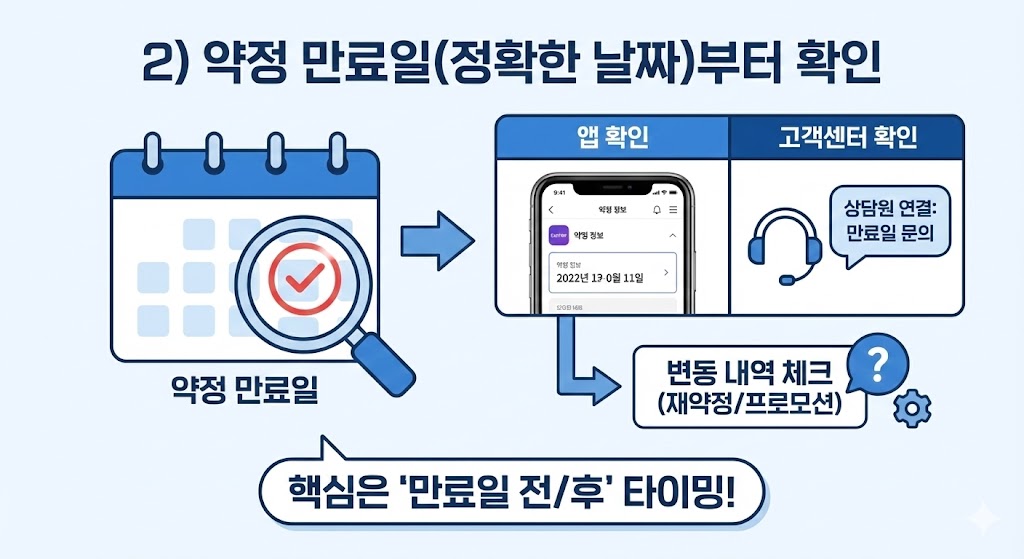 2) 약정 만료일(정확한 날짜)부터 확인