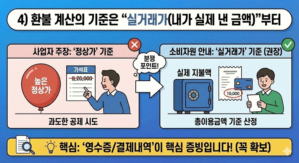 4) 환불 계산의 기준은 “실거래가(내가 실제 낸 금액)”부터