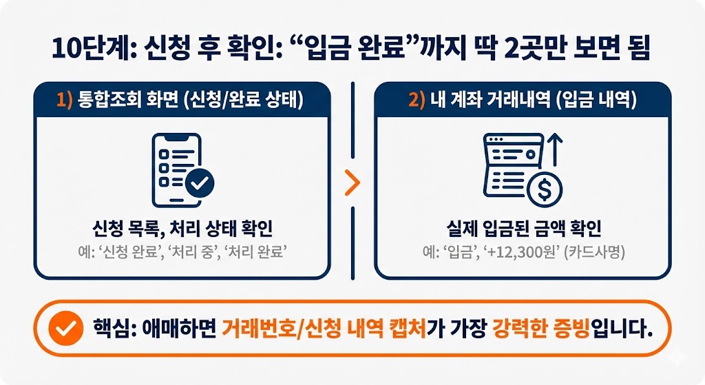 ✅ 여기서 애매하면 거래번호/신청 내역 캡처가 가장 강력한 증빙입니다.