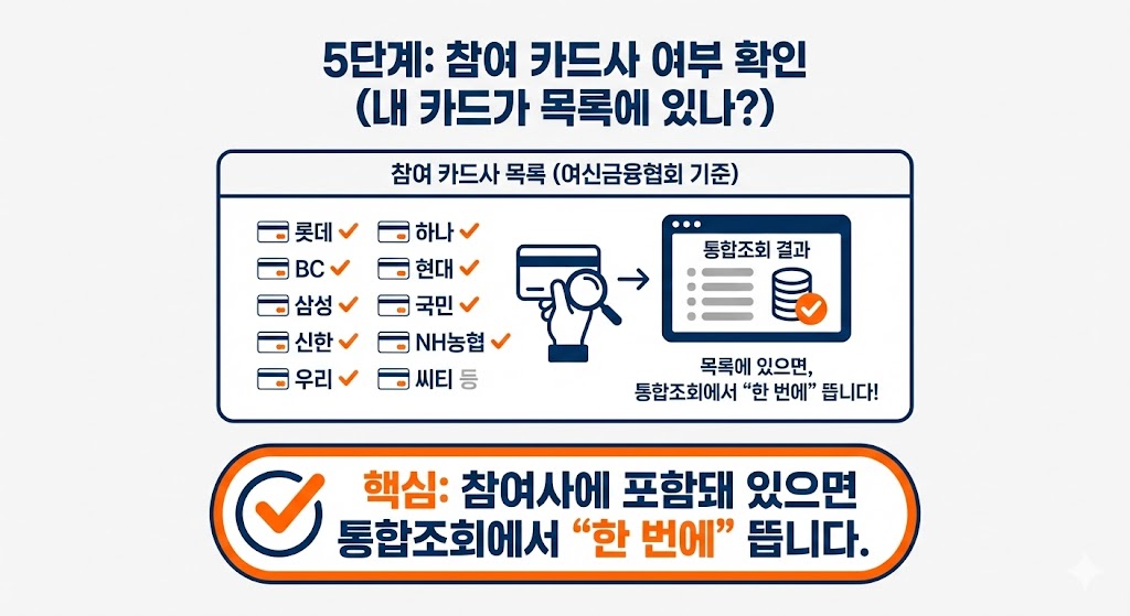 5) 참여 카드사 여부 확인(내 카드가 목록에 있나)