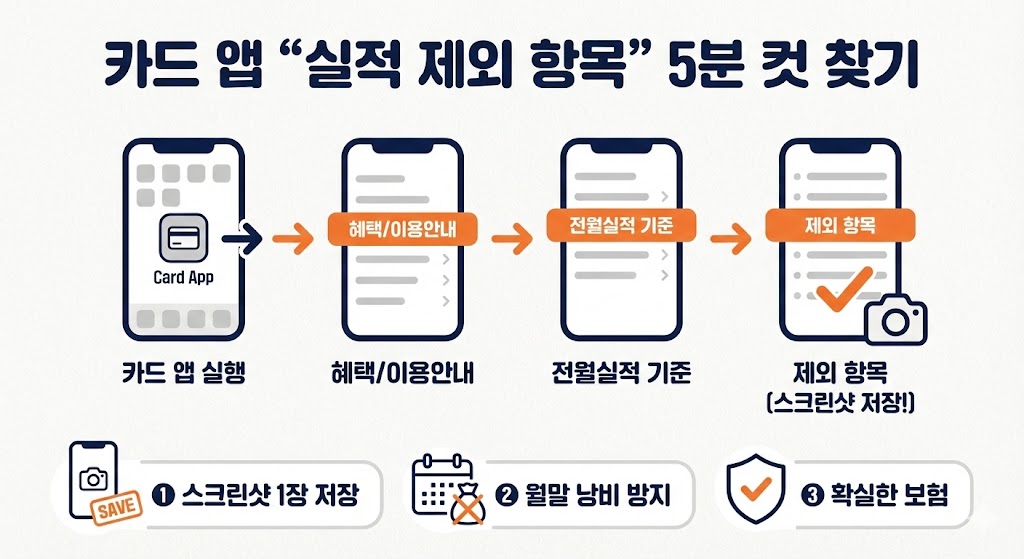 4) 카드 앱에서 “실적 제외 항목”을 찾는 가장 빠른 루트(5분 컷)