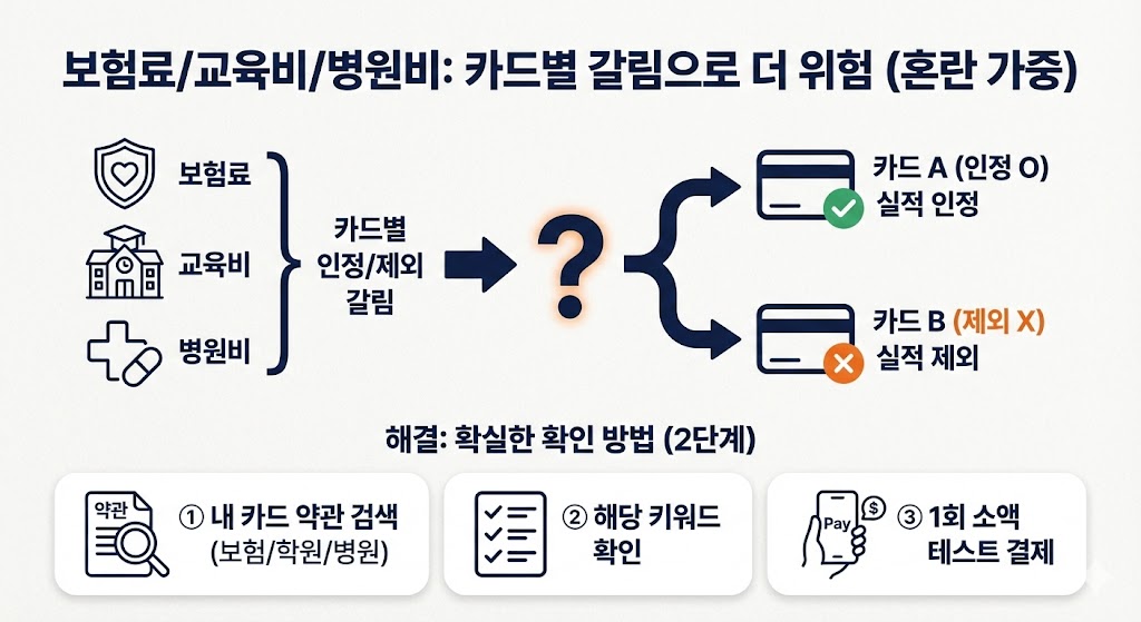 9) 보험료/교육비/병원비는 “카드별 갈림”이라서 더 위험하다