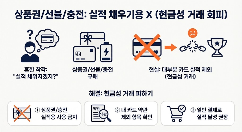 - 상품권/선불카드/충전으로 실적 채우려다 전부 제외
