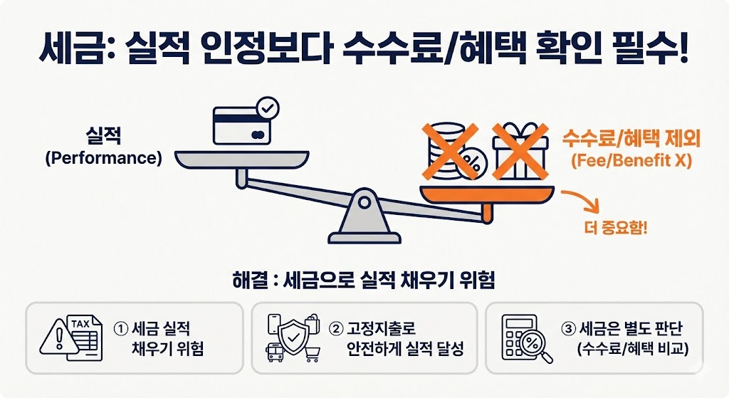 7) 세금은 “실적 인정”보다 “수수료/혜택”이 더 중요할 때가 많다