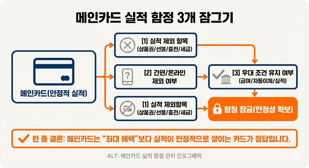 메인카드는 “최대 혜택”보다 실적이 안정적으로 쌓이는 카드가 정답입니다.