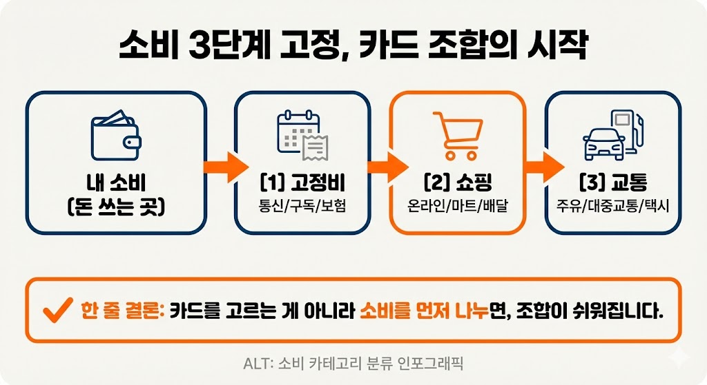 카드를 고르는 게 아니라 소비를 먼저 나누면, 조합이 쉬워집니다.