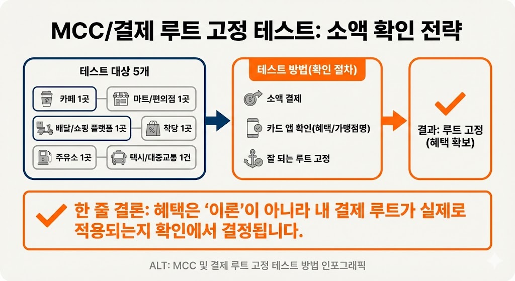 5) 자주 쓰는 가맹점 5개는 소액 테스트로 ‘MCC/결제 루트’를 고정한다