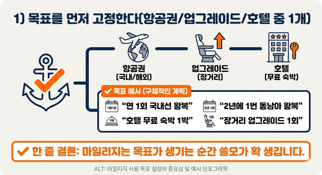 1) 목표를 먼저 고정한다(항공권/업그레이드/호텔 중 1개)