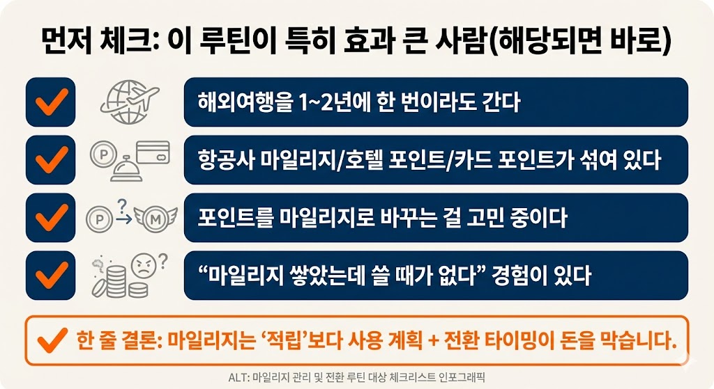 마일리지는 ‘적립’보다 사용 계획 + 전환 타이밍이 돈을 막습니다.
