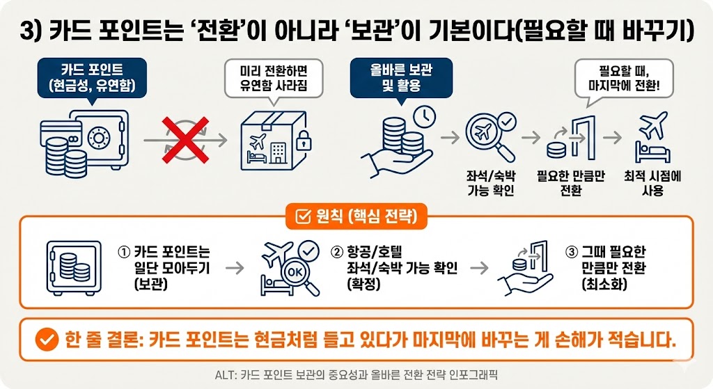 3) 카드 포인트는 ‘전환’이 아니라 ‘보관’이 기본이다(필요할 때 바꾸기)