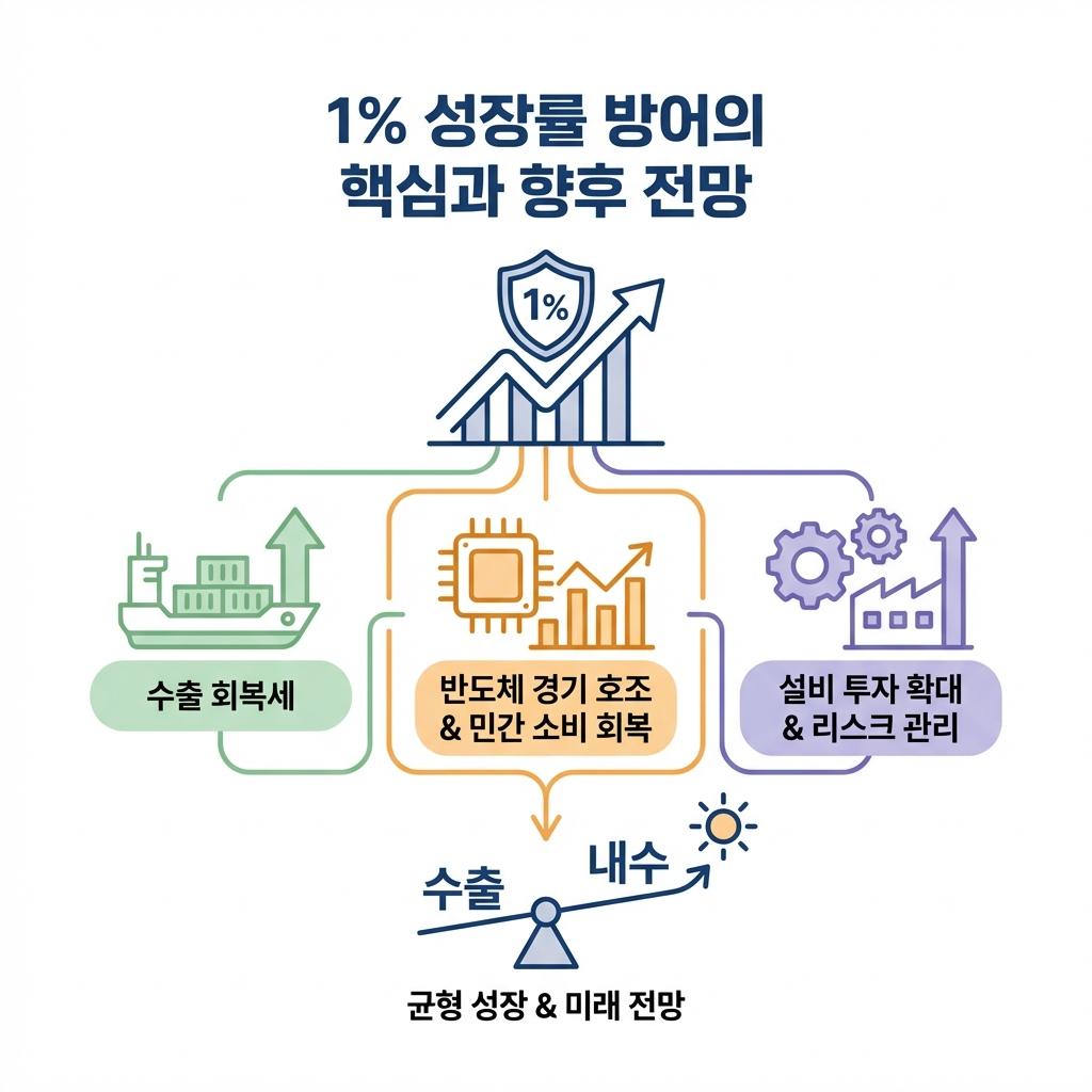 - 이번 실질 GDP 성장률 1% 달성은 경기 둔화 우려 속에서도 수출 회복세가 경제의 하방 지지를 견인했음을 보여주는 결정적 지표입니다.