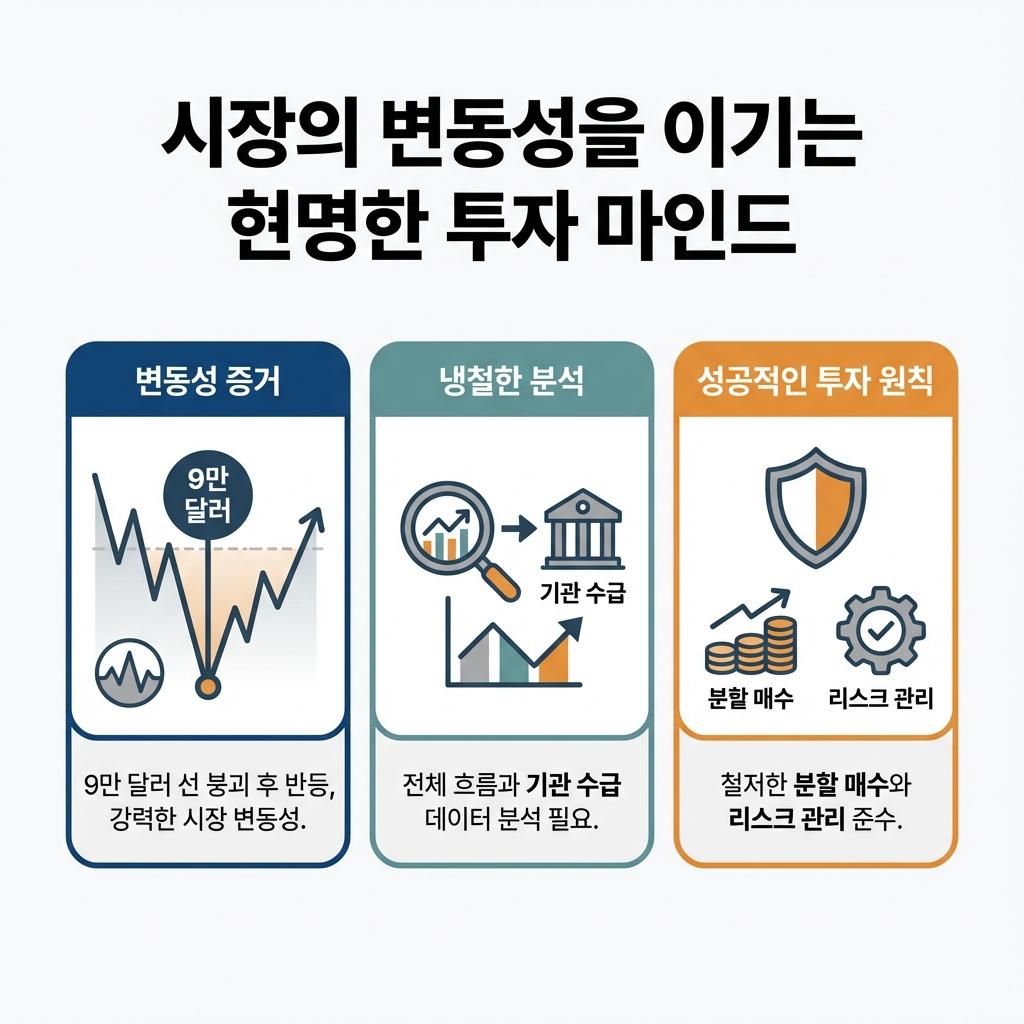 9만달러 지지선 붕괴와 이어진 반등으로 혼란스러운 가상화폐 시장의 원인을 분석하고, 신규 진입 전 투자자가 반드시 확인해야 할 핵심 체크포인트 7가지를 정리했습니다.