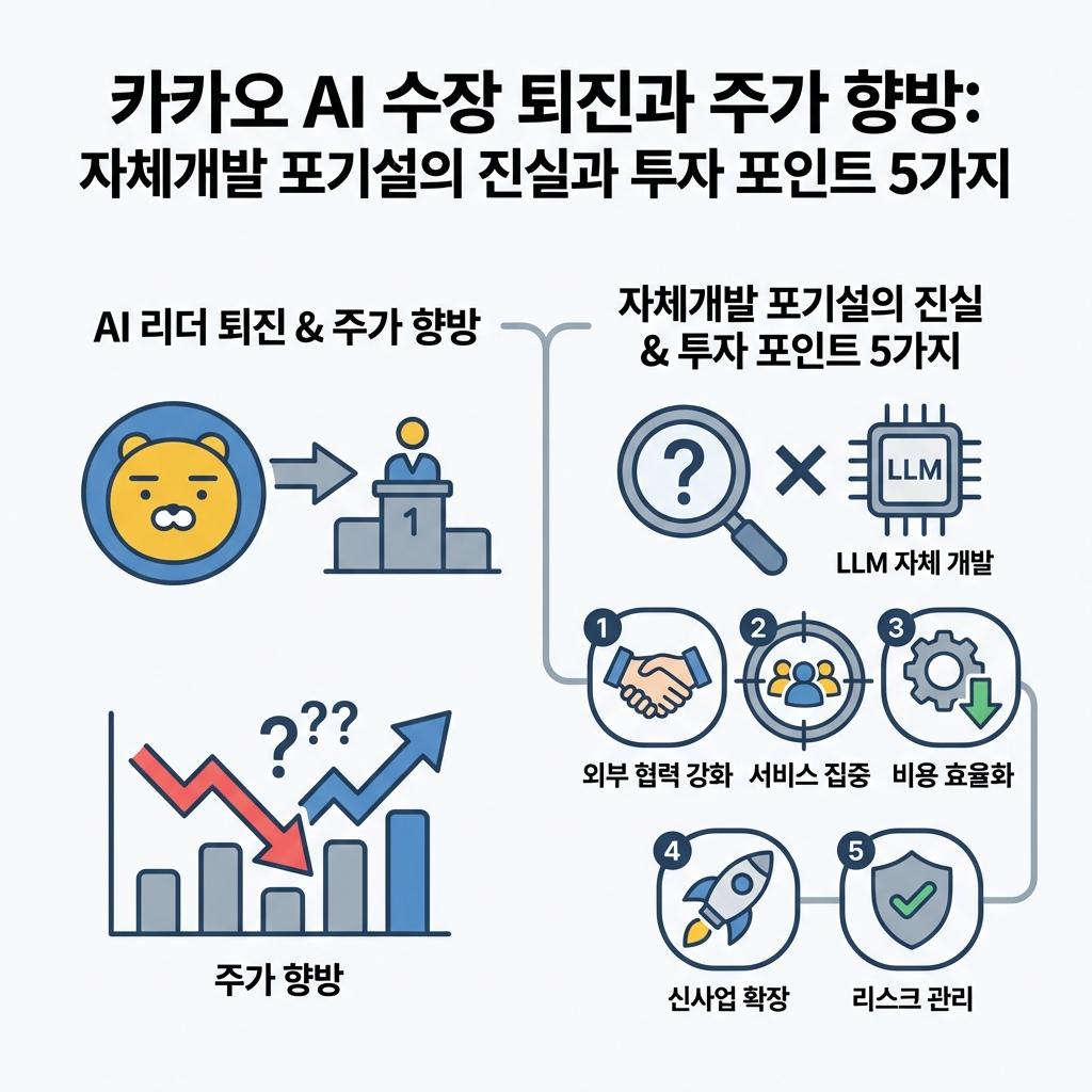 카카오 AI 경영진 교체 이슈와 LLM 자체 개발 중단 가능성을 심층 분석합니다. 주가 변동성에 대응하기 위해 투자자가 꼭 알아야 할 사업 리스크와 기회 요인 5가지를 정리했습니다.