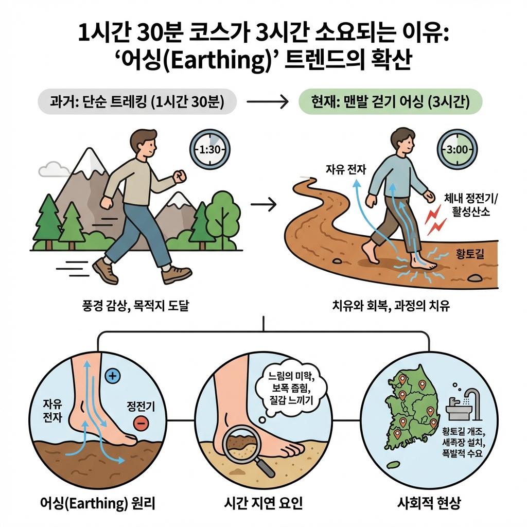1시간 30분 코스가 3시간 소요되는 이유: '어싱(Earthing)' 트렌드의 확산