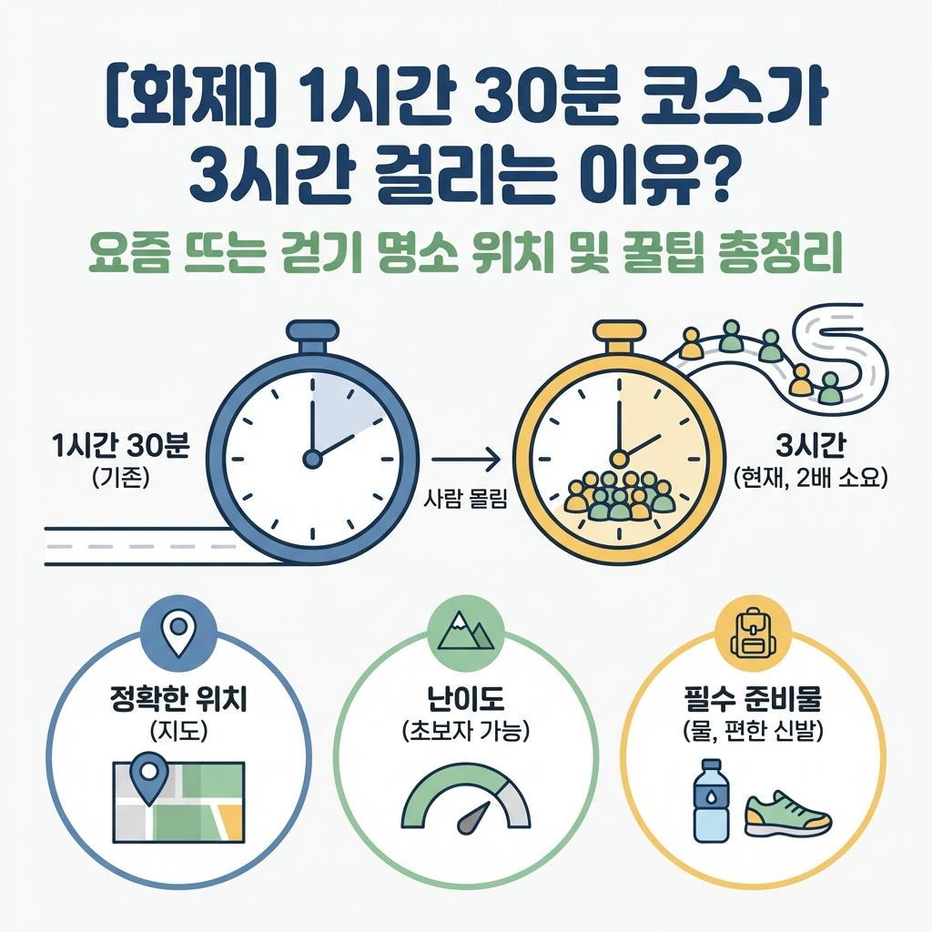 최근 뉴스에도 나올 만큼 사람들이 몰려 기존 시간보다 2배나 더 걸린다는 핫한 코스가 있다니 호기심이 생기면서도, 막상 갔다가 준비 없이 고생만 할까 봐 걱정되실 거예요.