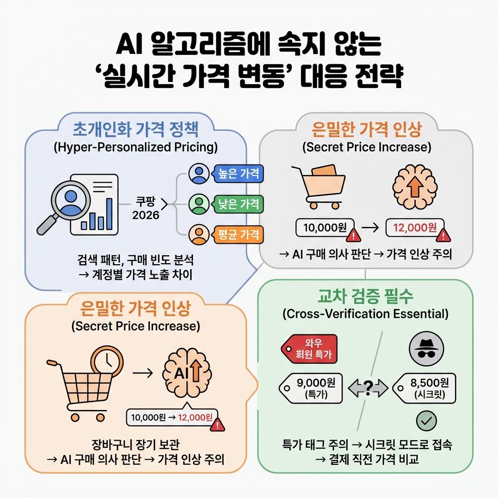 - 2026년의 쿠팡은 사용자 검색 패턴과 구매 빈도를 분석하여 계정마다 다르게 가격을 노출하는 **초개인화 가격 정책(Hyper-Personalized Pricing)**을 더욱 강화했습니다.