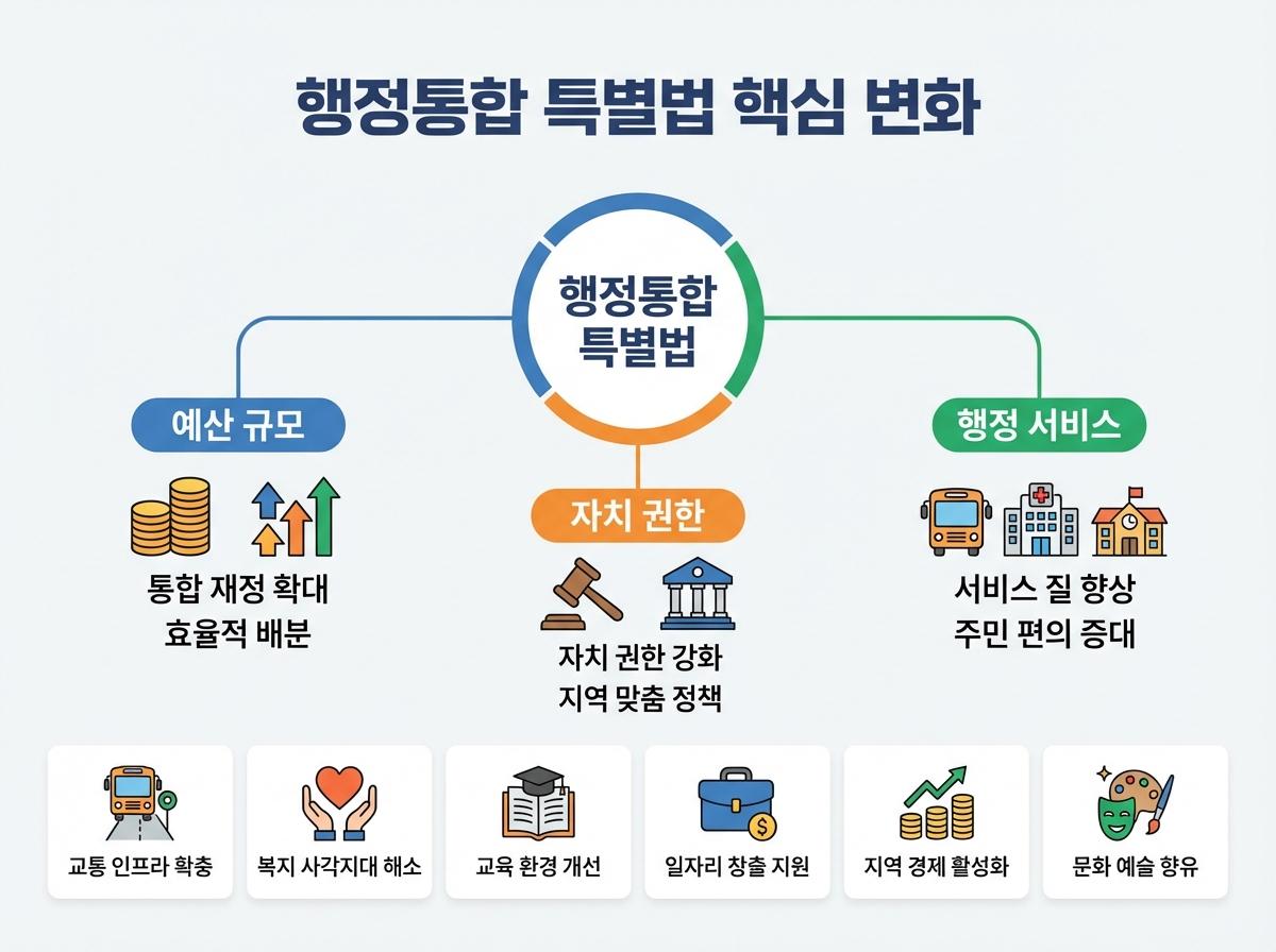 통합 후 달라지는 예산 규모와 자치 권한, 그리고 주민들이 체감할 행정 서비스의 변화 6가지를 알기 쉽게 정리했습니다.