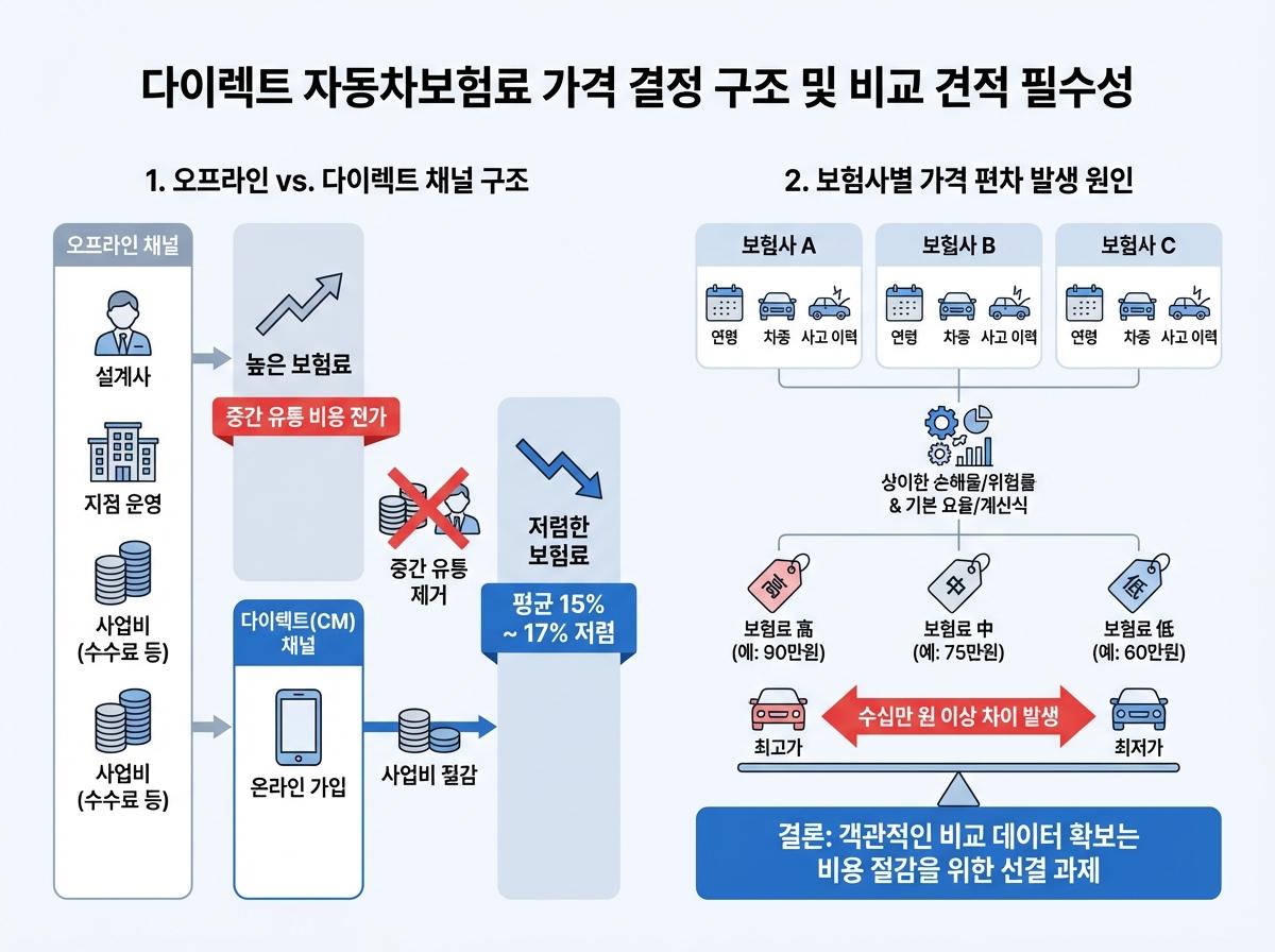 다이렉트 자동차보험료의 가격 결정 구조와 비교 견적의 필수성
