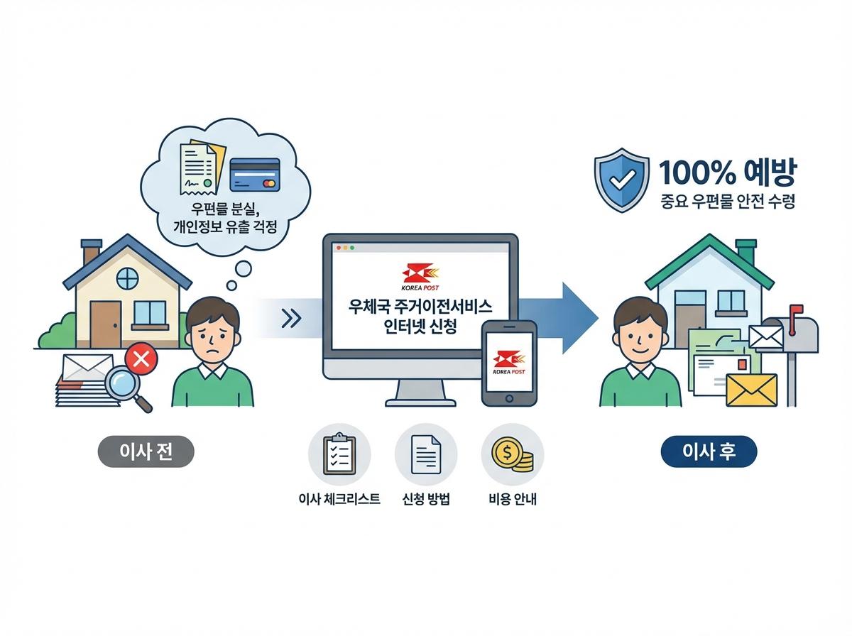- 단순한 우편물 수취 편의를 넘어, 이사 직후 주소 변경 누락으로 인해 발생할 수 있는 금융 고지서 및 개인정보가 담긴 우편물의 분실 및 유출을 원천 차단하는 핵심 보안 장치입니다.