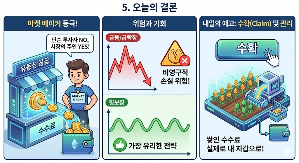 이제 여러분은 단순한 투자자가 아니라, 시장에 유동성을 공급하는 *마켓 메이커(Market Maker)*가 되었습니다.