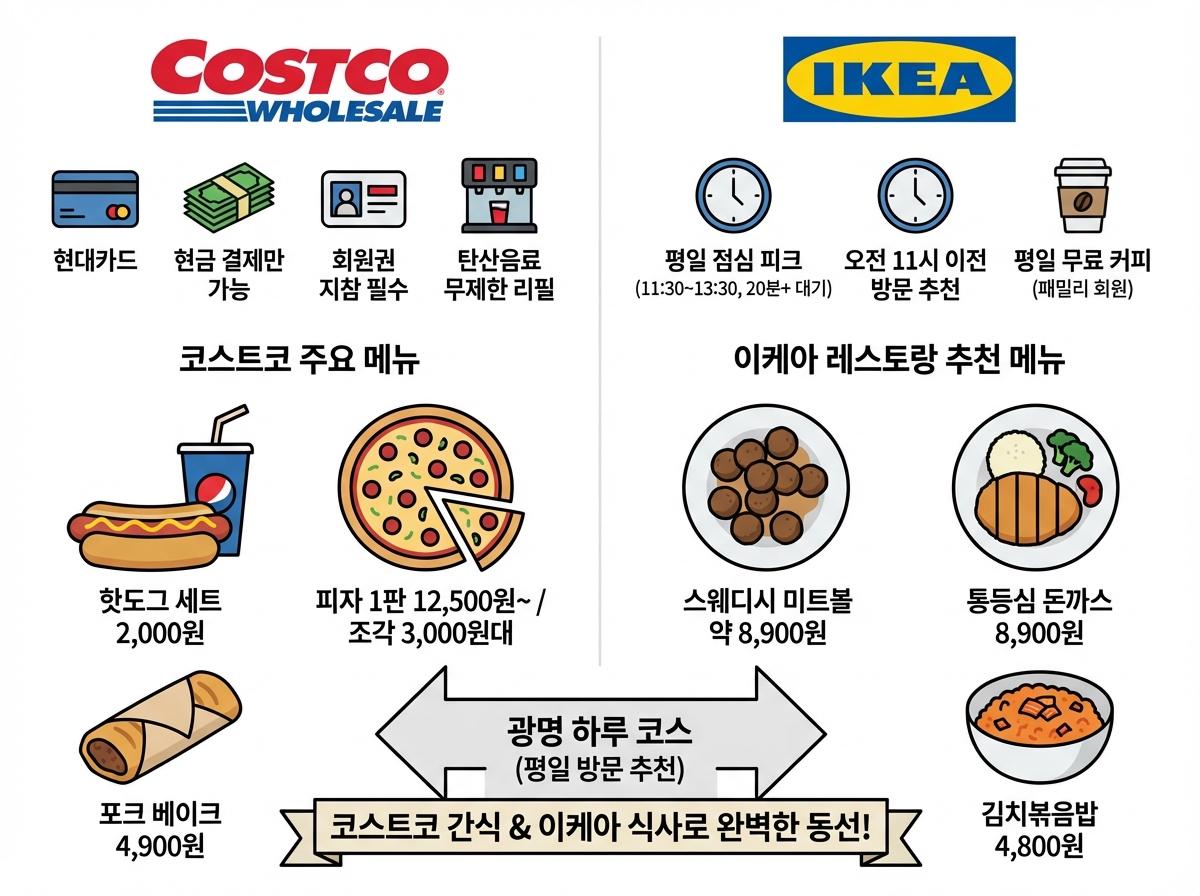 광명 쇼핑의 필수 코스인 코스트코와 이케아의 최신 메뉴판 가격 변동 사항을 확인해 보세요.