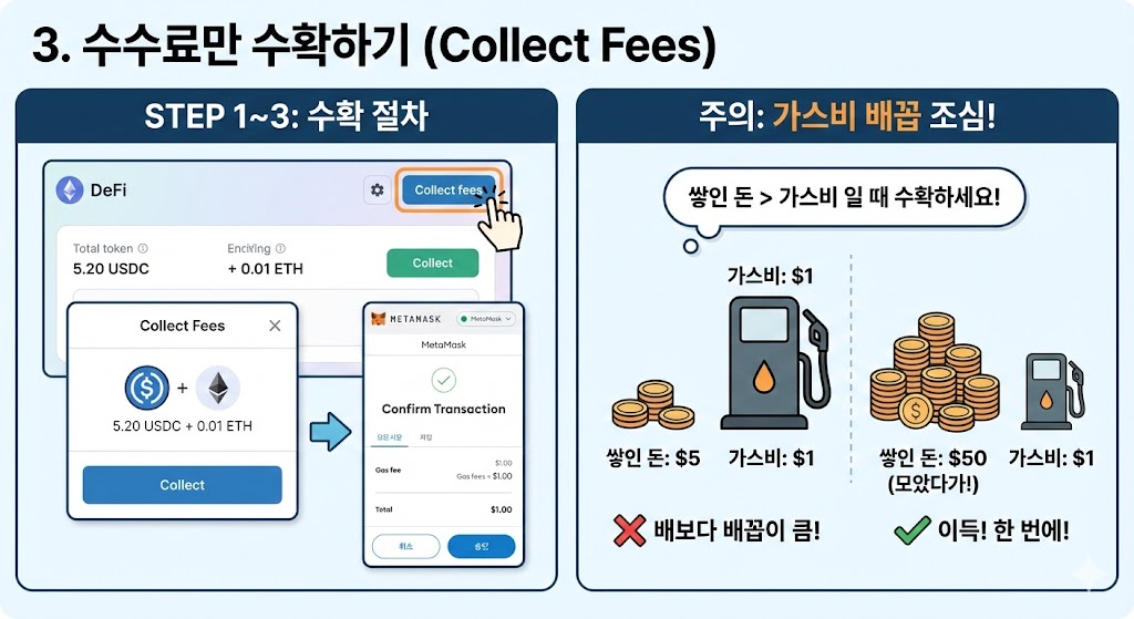 - 결과: 유동성이 해제되면서 '남은 원금 + 아직 안 찾은 수수료'가 모두 한 번에 지갑으로 들어옵니다.