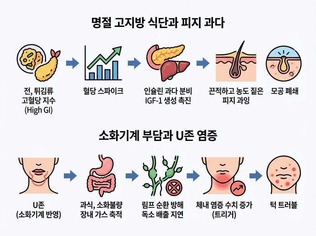 명절 고지방 식단과 턱 뾰루지의 병리학적 원인