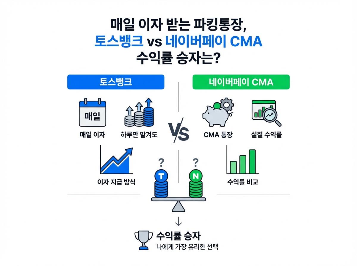 토스뱅크와 네이버페이의 실질 수익률과 이자 지급 방식을 비교하여 나에게 가장 유리한 파킹통장이 무엇인지 명쾌하게 정리해 드립니다.