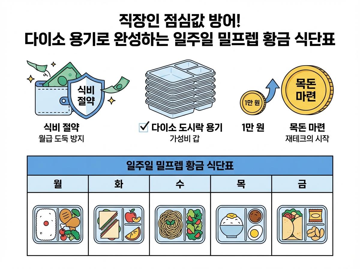 직장인 점심값 부담을 줄이기 위해 일요일 2시간을 투자하여 5일 치 점심을 미리 만드는 밀프렙은 월 15만 원 이상의 절약 효과가 있습니다.