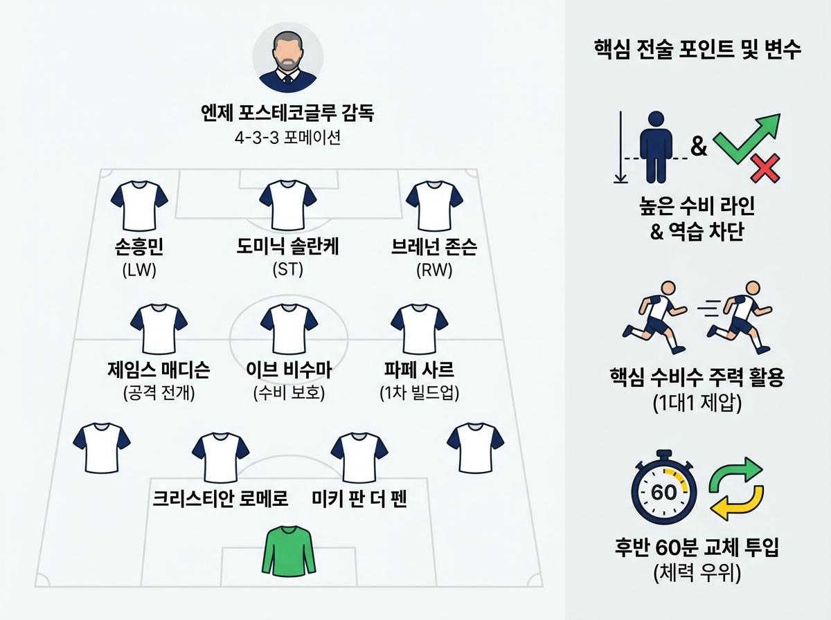손흥민 선수의 선발 출전 여부와 핵심 관전 포인트, 현지 예상 라인업 정보를 놓치지 말고 확인하세요.