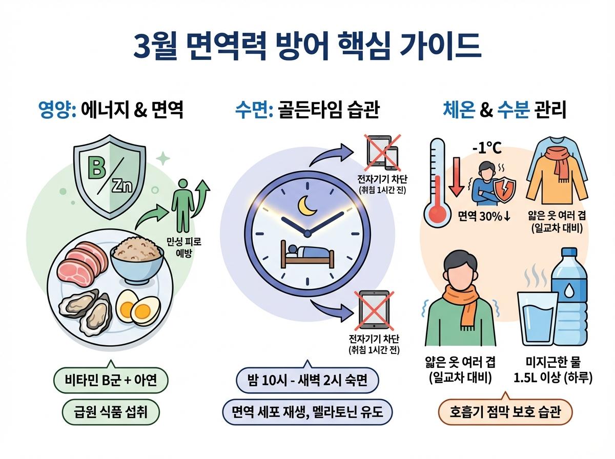 3월 면역력 방어를 위한 핵심 생활 수칙 및 영양 가이드