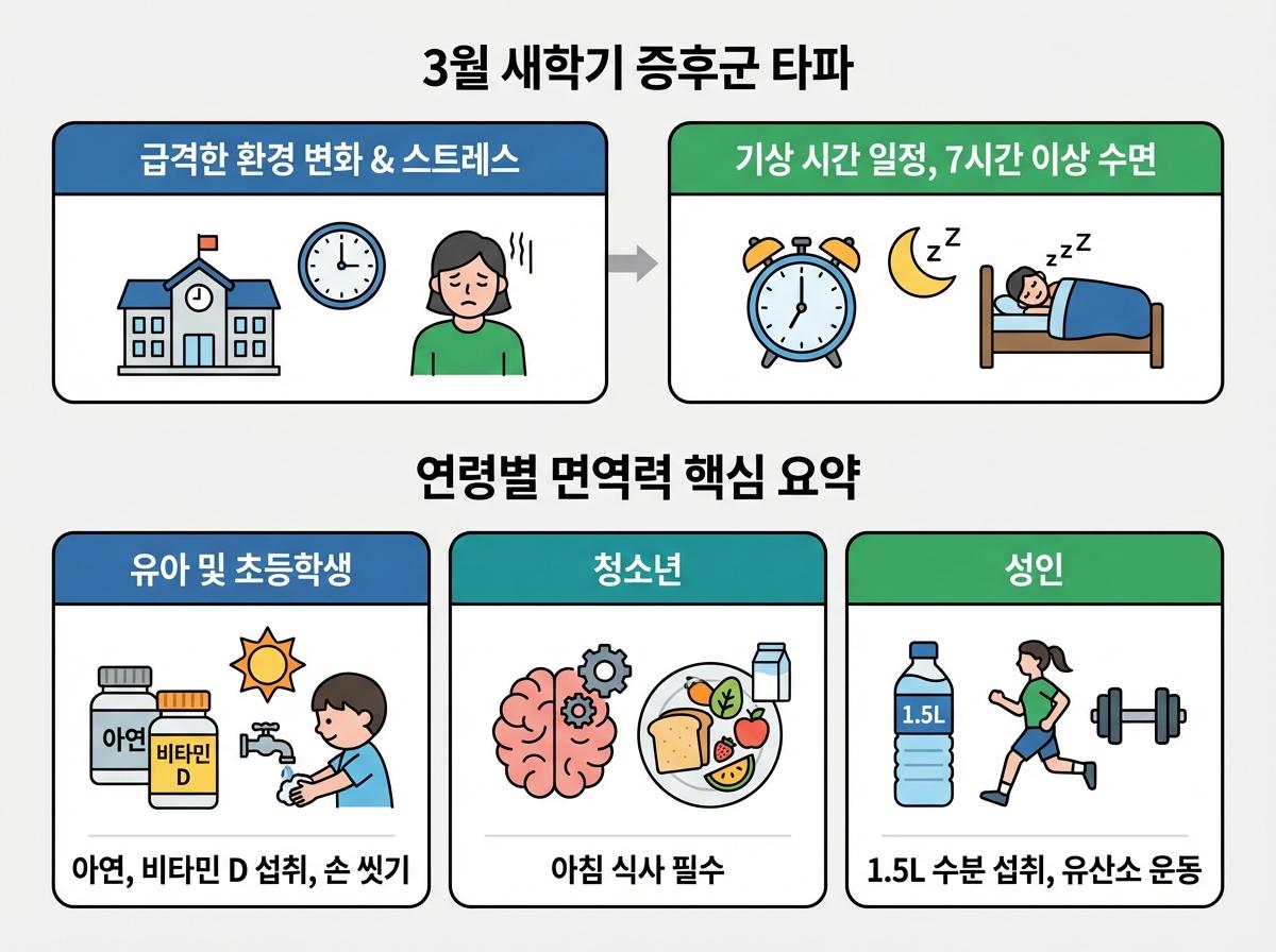 3월 새학기 증후군 타파 및 연령별 면역력 핵심 요약