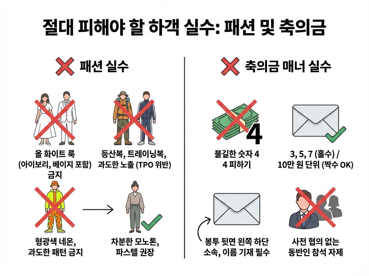 절대 피해야 할 하객 패션 및 축의금 매너 실수