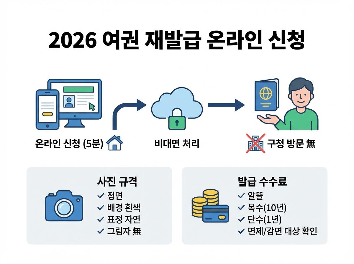 2026년 최신 기준 여권 재발급 온라인 신청 절차와 반려 걱정 없는 여권 사진 규격, 그리고 정확한 발급 수수료 정보까지 필수 내용을 담았습니다.