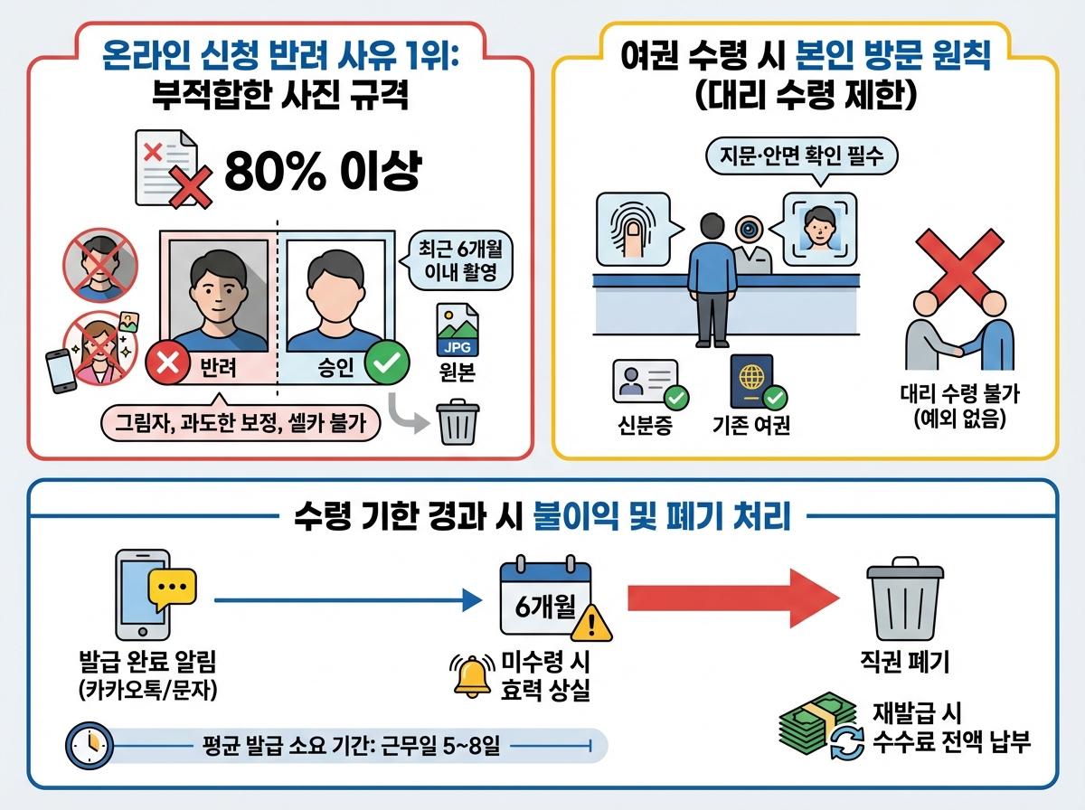 - 온라인 신청 반려 사유의 90% 이상은 여권용 사진 파일 규격 미준수에서 발생하므로 기술적 기준을 정확히 맞춰야 합니다.