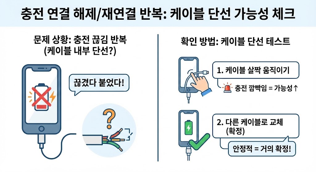 5) 충전 중 “연결 해제/재연결 반복”이면 케이블 단선 가능성 체크