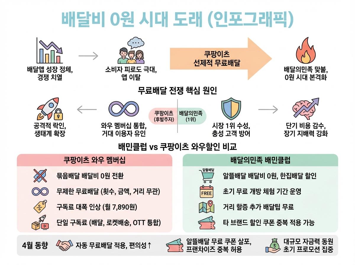 배달비 0원 시대? 배민클럽 vs 쿠팡이츠 와우할인 무료배달 구독료 비교