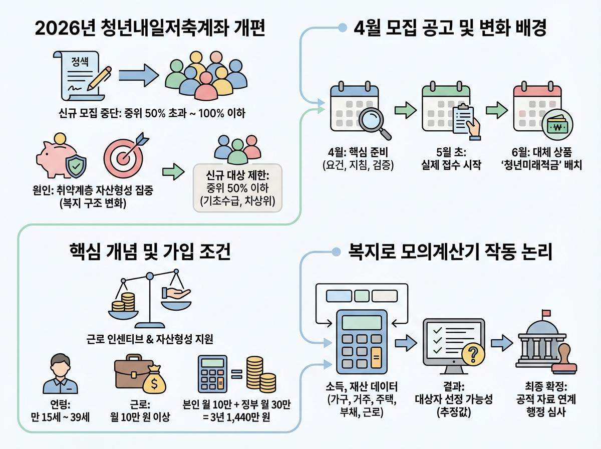 - 2026년 청년내일저축계좌의 가장 큰 변화는 가입 대상 기준의 변동입니다.