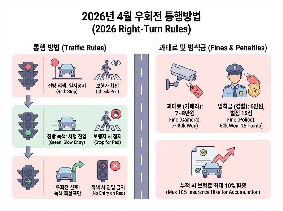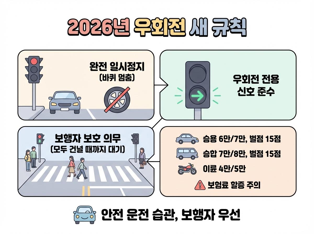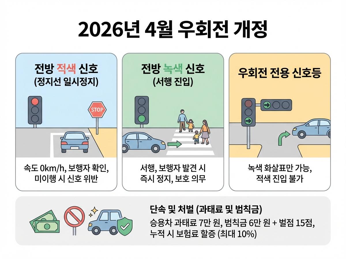 2026년 4월부터 적용되는 우회전 교차로 통행방법과 과태료 기준을 정리했습니다.