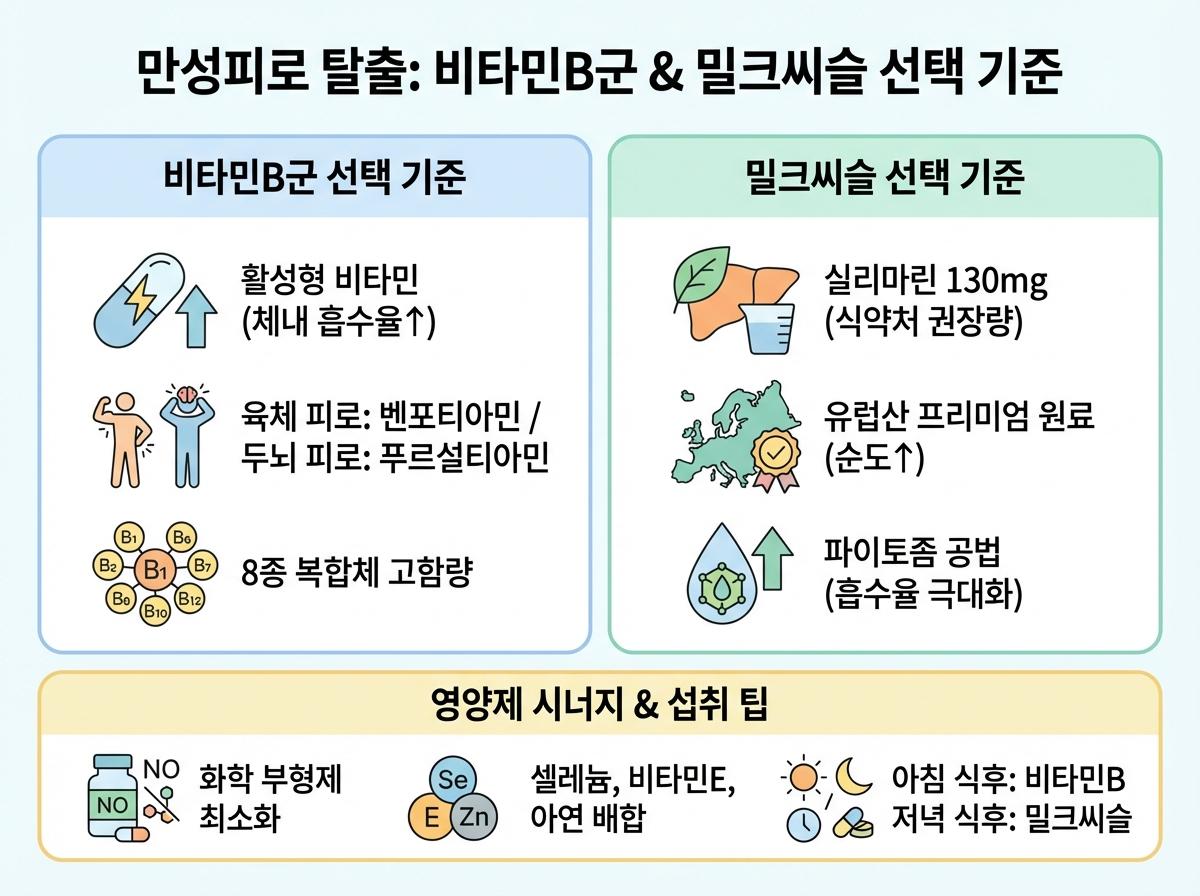 무작정 커피만 마시며 버틸 게 아니라 제 몸 상태에 맞는 활성형 비타민B군과 밀크씨슬을 제대로 골라서 챙겨 먹어야겠다고 다짐했어요.