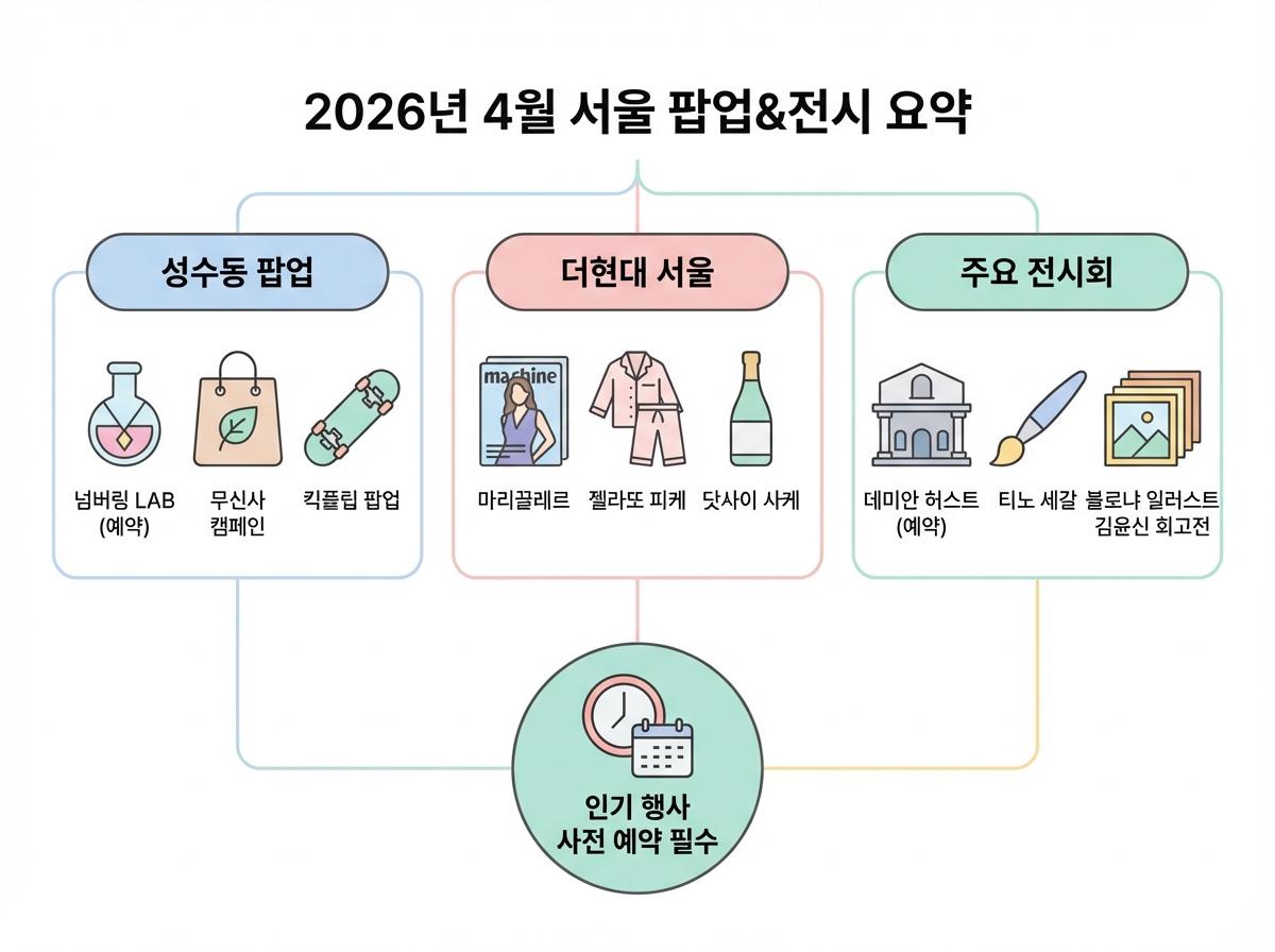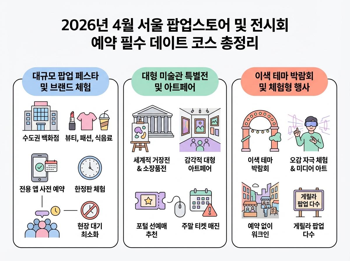 2026년 4월 서울 및 수도권에서 열리는 인기 팝업스토어와 주요 전시회 라인업을 소개합니다.