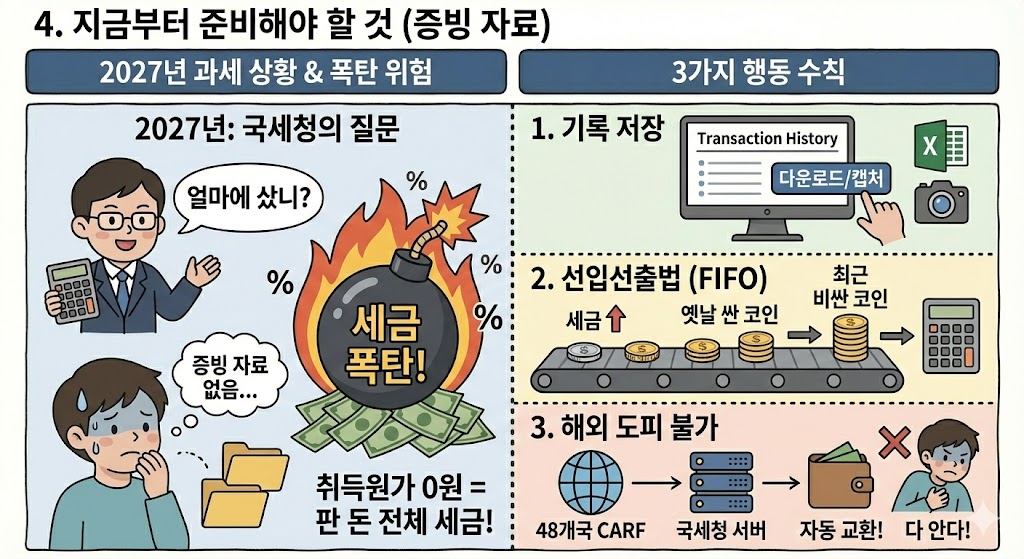 - 해외 도피 불가: 2027년부터 전 세계 48개국이 참여하는 '가상자산 정보 자동 교환(CARF)' 시스템이 가동됩니다. "해외 지갑에 숨겨두면 모르겠지?" 하는 생각은 버려야 합니다. 국세청이 다 알게 됩니다.